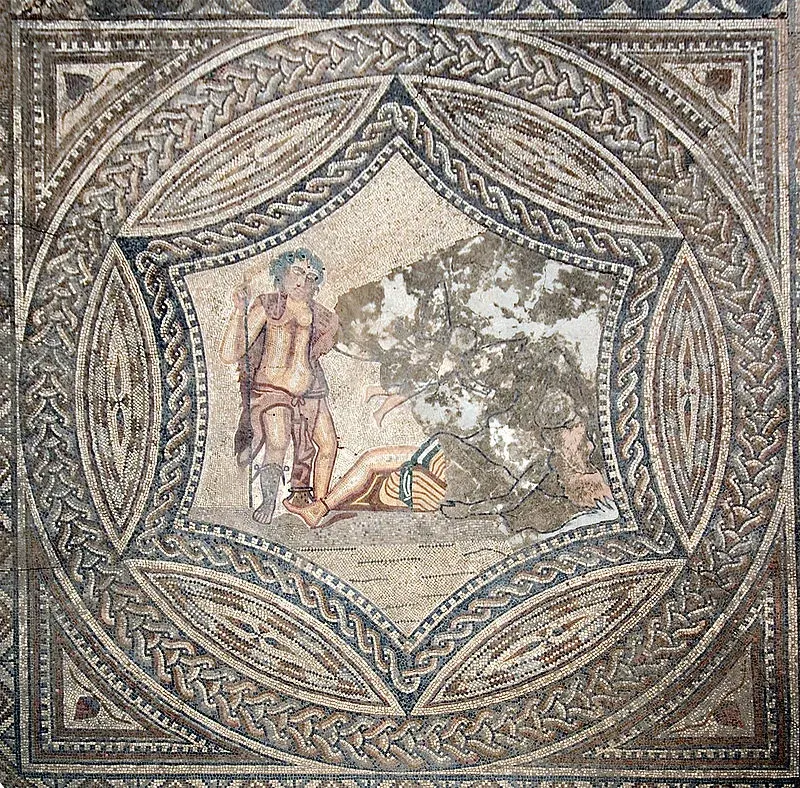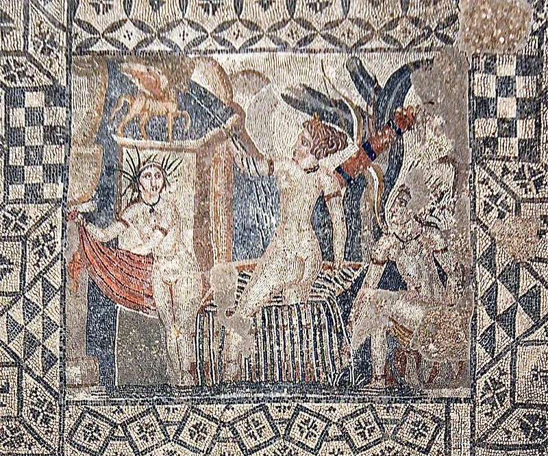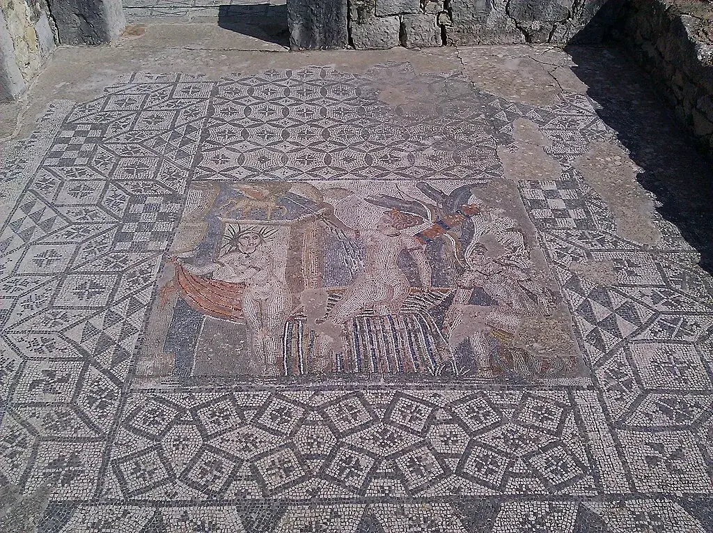 - **บ้านของอัศวิน** มีโมเสกของ **บาคคัสพบอาเรียดเน่ที่กำลังหลับ**