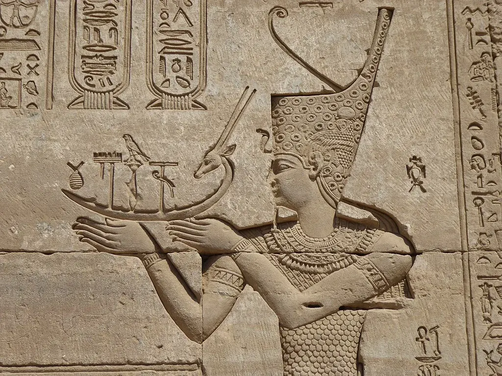 ภาพสลักแสดงให้เห็นทราจันในมาดของฟาโรห์อียิปต์กำลังถวายของบูชาแก่เหล่าเทพ ซึ่งเป็นเครื่องยืนยันถึงความซับซ้อนและยาวนานของความสัมพันธ์ระหว่างโรมันกับอียิปต์