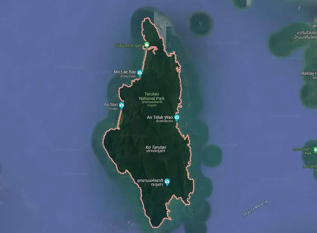 เกาะตะรุเตา มีขนาดพื้นที่ 150.84 ตารางกิโลเมตร