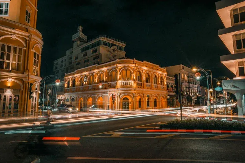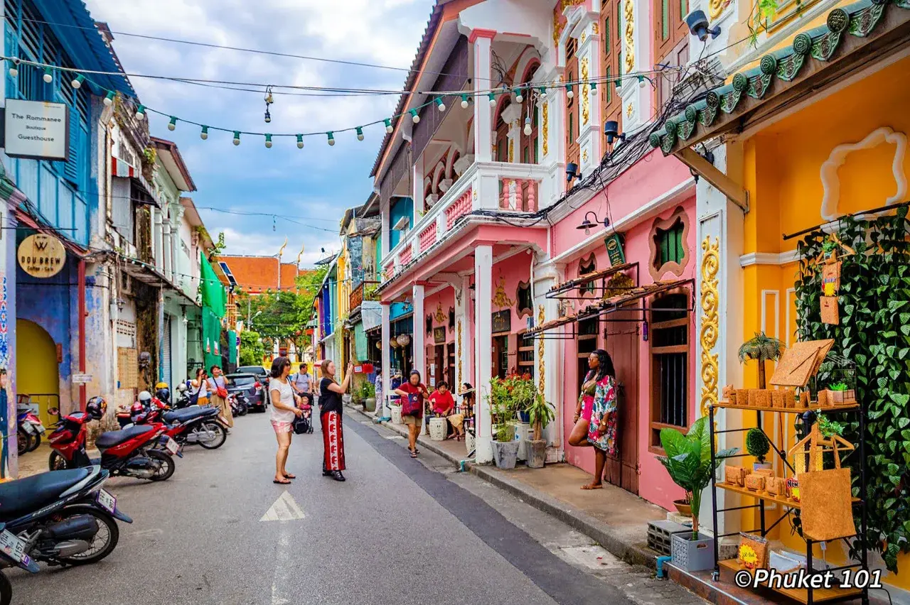 สถาปัตยกรรมชิโน-โปรตุกีสในเขตเมืองเก่า ปัจจุบันภูเก็ตกลายเป็นจังหวัดท่องเที่ยว