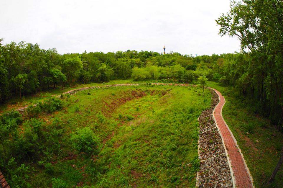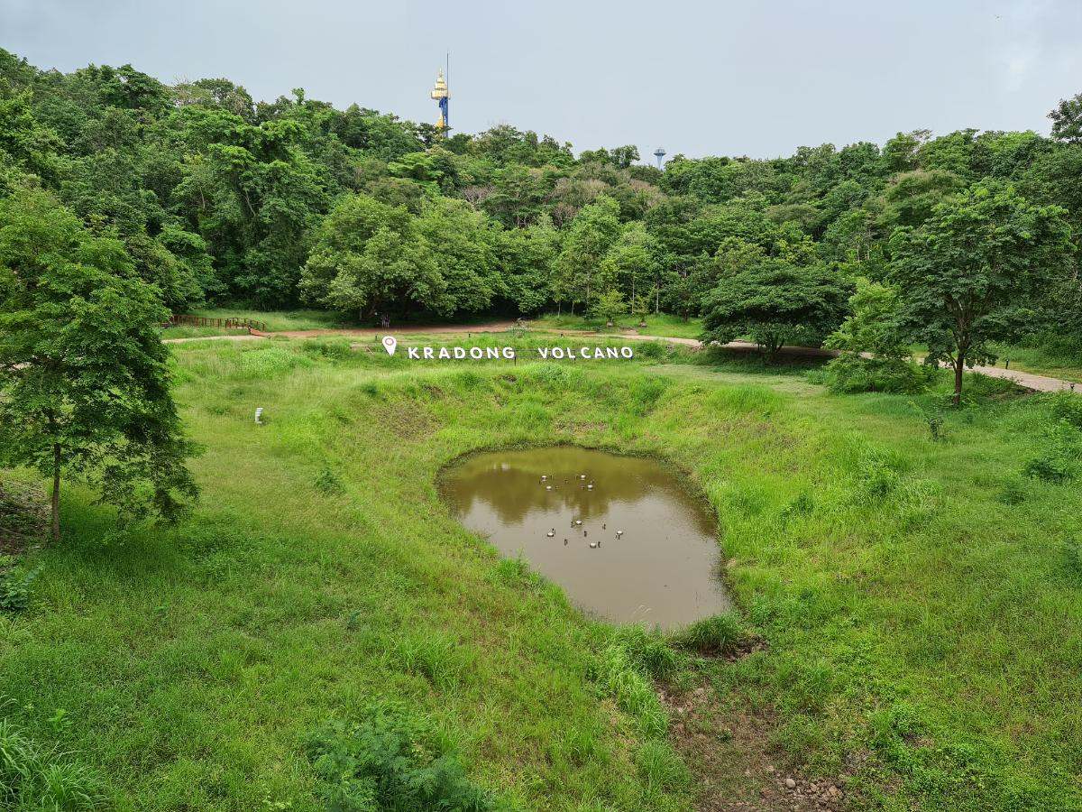 ของส่วนของปากปล่องให้เห็นได้ ปัจจุบันมีป่าไม้ขึ้นปกคลุม