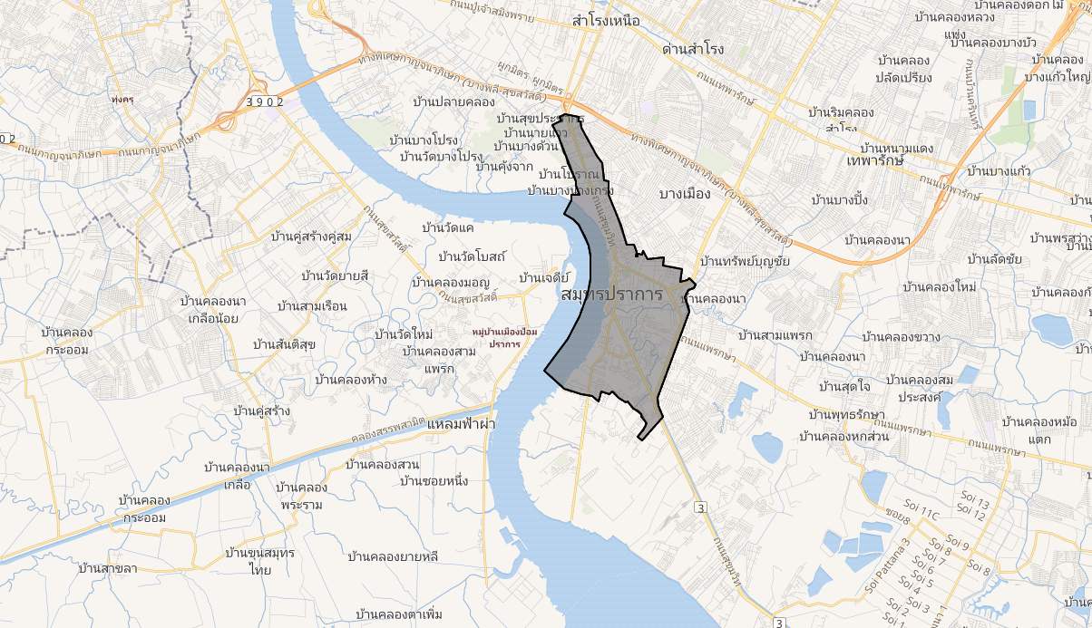 (อำเภอเมืองสมุทรปราการ) มีคลองสาธารณะ และแนวเส้นตรงจากแม่น้ำเจ้าพระยา