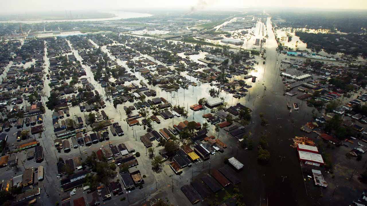 พายุได้พัดขึ้นฝั่งใกล้เมืองนิวออร์ลีนส์ ซึ่งเป็นเมืองที่ตั้งอยู่ต่ำกว่าระดับน้ำทะเล