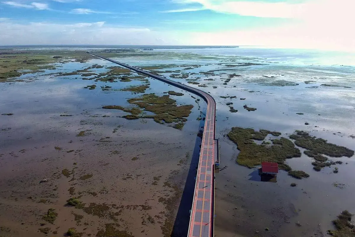 ที่ทอดยาวกว่า 14 กิโลเมตร ถือเป็นสะพานที่ยาวที่สุดในประเทศไทย