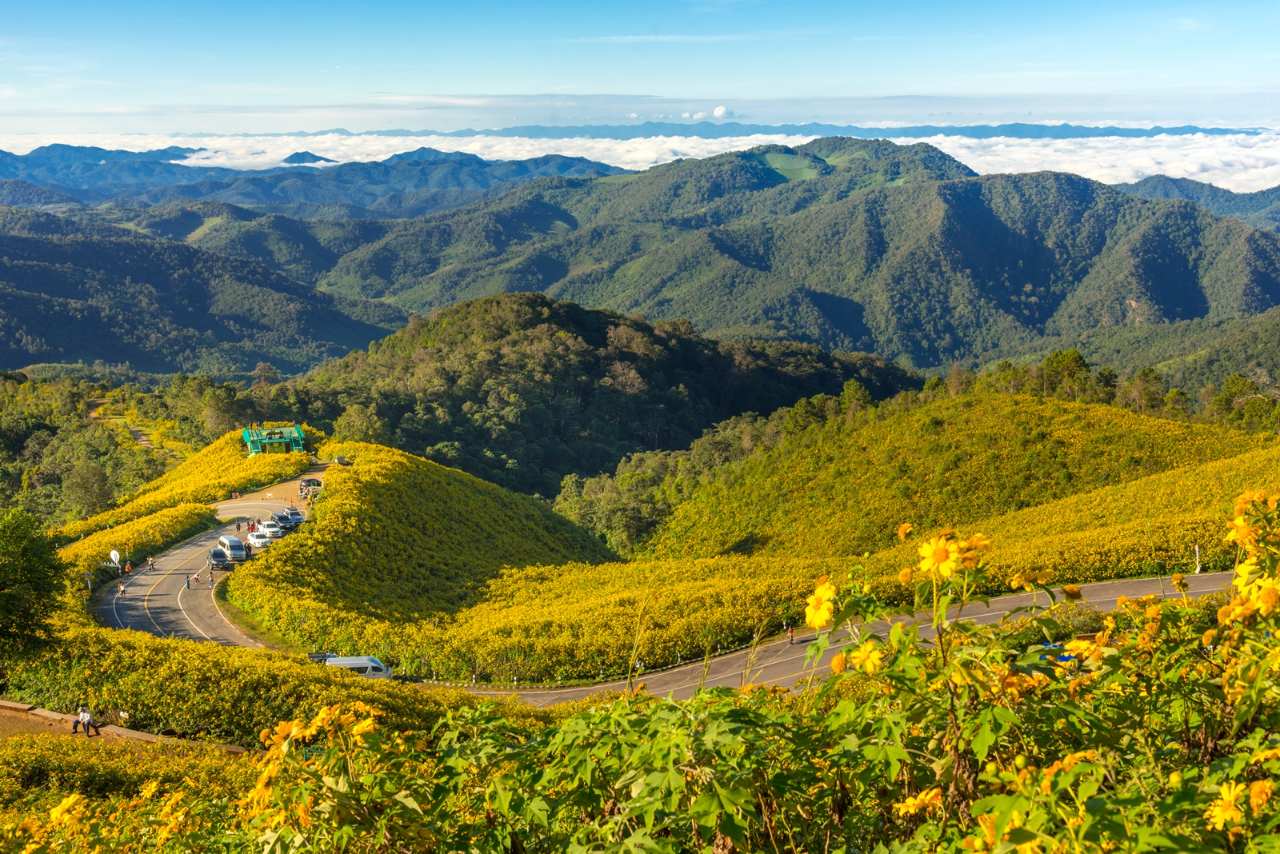 ถนนในเขตวนอุทยานทุ่งบัวตอง จังหวัดแม่ฮ่องสอน