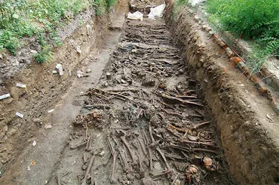 เกาะโปเวกเลียยังเป็นที่ตั้งของ **หลุมศพโรคระบาด (Plague Pits)** หลายแห่ง รายงานจาก *National Geographic* ประมาณว่ามีผู้เสียชีวิตบนเกาะนี้ตลอดหลายศตวรรษกว่า **100,000 คน** และถูกฝังรวมในหลุมศพเหล่านี้