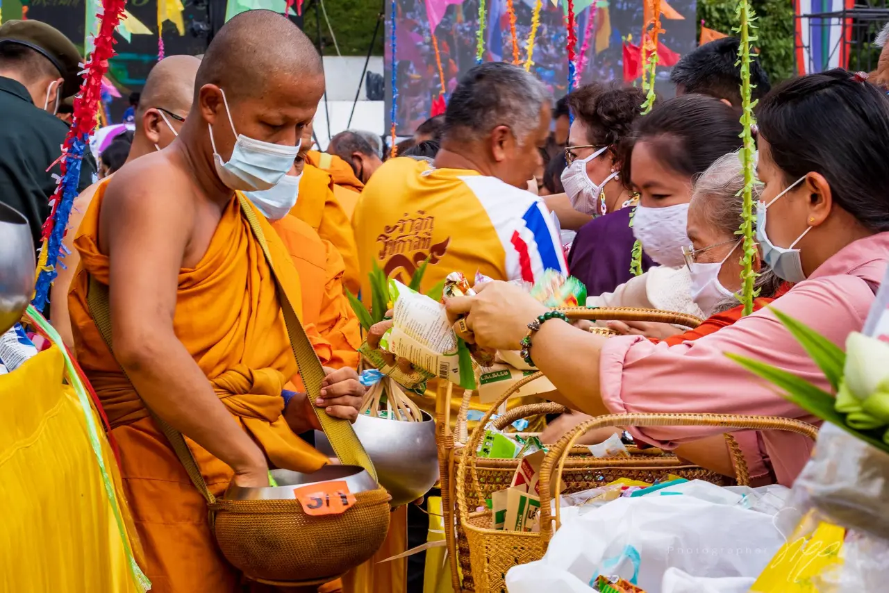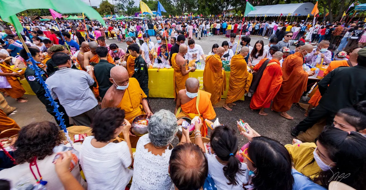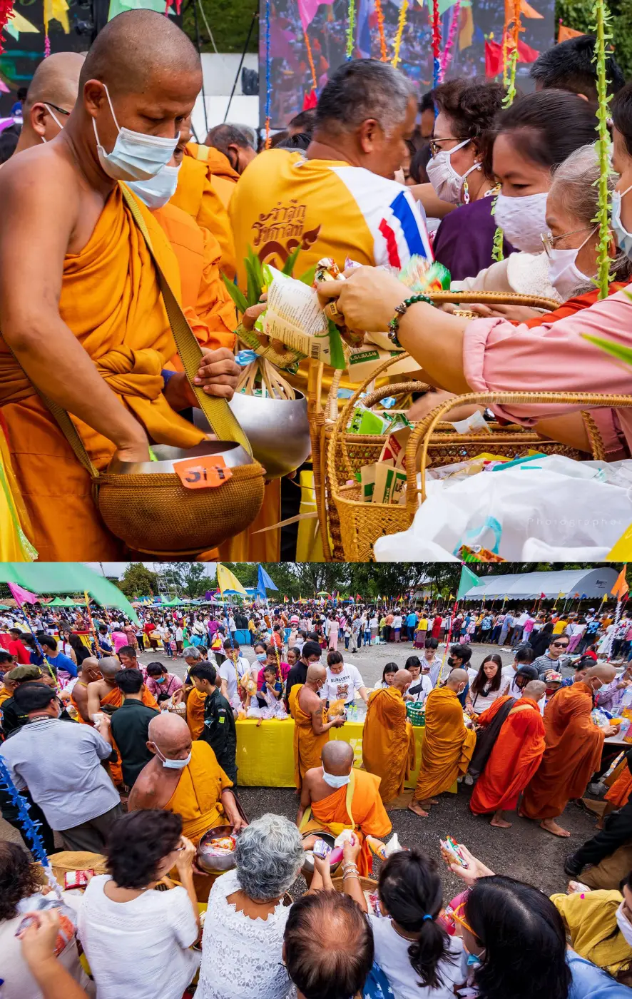 และเมื่อขบวนพระสงฆ์ยาวเหยียด เดินสะพายบาตรอยู่หลังดพระเกี๊ยว ลงจากเขาสู่พื้นราบ พุทธศาสนิกชนที่พร้อมใจกันตั้งแถวสองฝั่งรอเพื่อใส่บาตร ความศรัทธาในเช้าวันนั้นมันหนาแน่นจนทำให้พี่น้ำตาคลอ นี่แหละ “บุญใหญ่” ที่ไม่ได้มีทุกที่