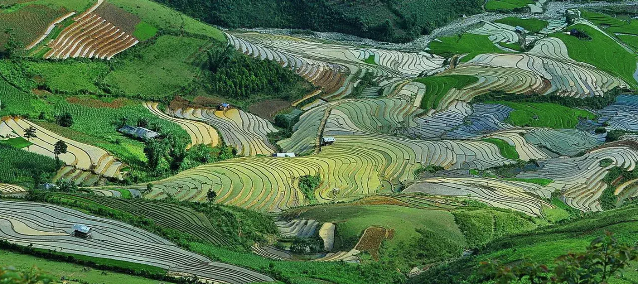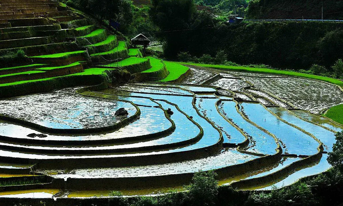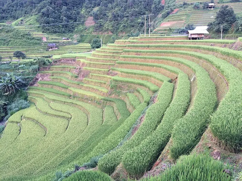 ภูมิประเทศสูงชันและขาดแคลนน้ำทำให้ชาวม้ง (Hmong) ในท้องถิ่นต้องพัฒนาวิธีการเพาะปลูกที่เหมาะสม พวกเขาสร้าง “นาขั้นบันได” โดยปรับระดับพื้นที่ภูเขาเป็นชั้น ๆ แต่ละชั้นกว้างเพียง 1–1.5 เมตร (ราว 3–5 ฟุต) ทอดยาวครอบคลุมกว่า 2,200 เฮกตาร์