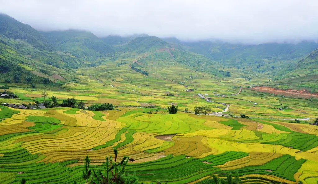 มู่ก๋างไฉเป็นอำเภอเล็กๆ ห่างจากฮานอยประมาณ 300 กิโลเมตร มีชื่อเสียงในเรื่องนาขั้นบันไดอันน่าทึ่ง ซึ่งเป็นหนึ่งในนาขั้นบันไดที่สวยที่สุดในโลก