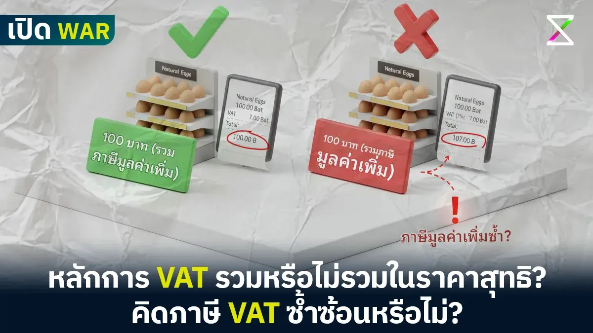 ตามหลักการทั่วไป การแสดงราคาสินค้าหรือบริการให้แก่ผู้บริโภค จะต้องเป็นราคาที่ รวมภาษีมูลค่าเพิ่ม (Inclusive VAT) ไว้แล้ว เว้นแต่จะมีการแสดงราคาอย่างชัดเจนว่าเป็นราคาที่ ยังไม่รวมภาษีมูลค่าเพิ่ม (Exclusive VAT) ดังนั้น หากร้านค้าแสดงราคาขาย ณ จุดขาย เช่น ติดป้ายราคา ไข่ไก่ธรรมชาติ ราคา 100 บาท และในใบเสร็จมีการเรียกเก็บ VAT 7 บาท เพิ่มเติม โดยที่ป้ายราคาไม่ได้ระบุว่า "ราคานี้ยังไม่รวม VAT" ถือว่าร้านค้าอาจเรียกเก็บ VAT ซ้ำซ้อน ซึ่งเป็นสิ่งที่เราต้องสังเกตและตรวจสอบ