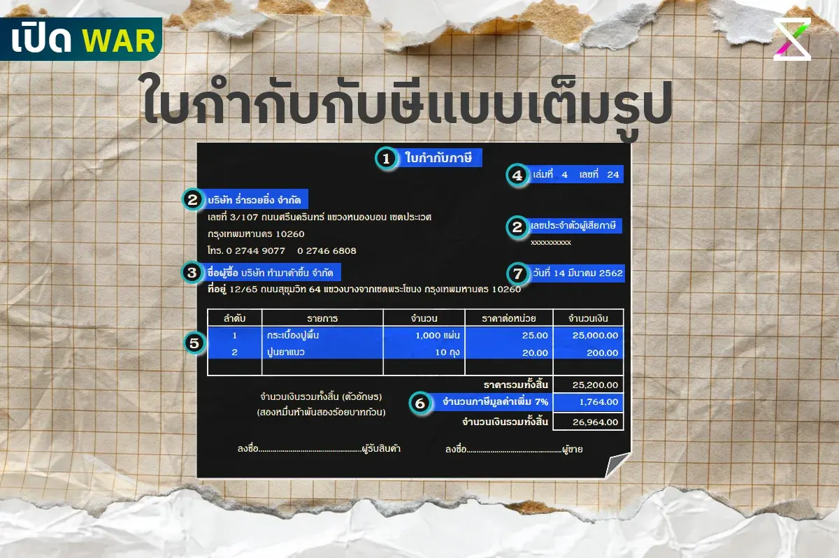 | ความสำคัญทางภาษี | ใช้เป็นหลักฐานรายจ่าย (ถ้ามี) | ใช้เป็นหลักฐานในการขอคืน/หัก ภาษีซื้อ (สำหรับผู้ประกอบการ) |