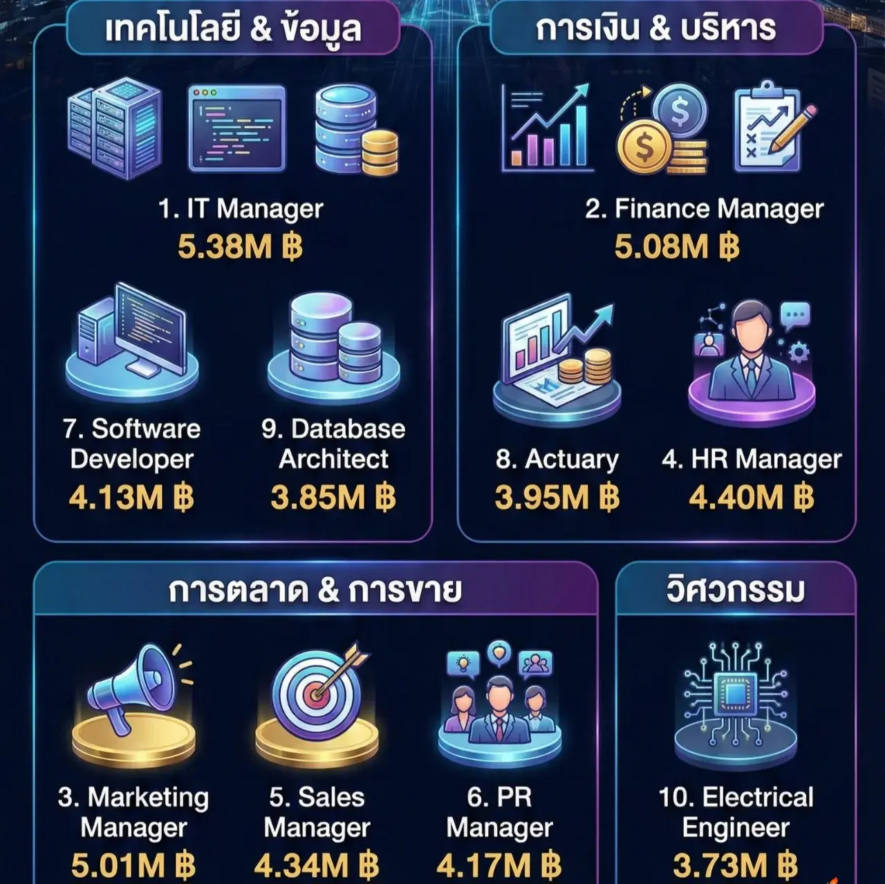 เปิดโลก 10 อาชีพ "มนุษย์เงินล้าน" ยุคดิจิทัล (ที่ไม่ใช่แค่วิศวะ!) รายได้พุ่ง 3-5 ล้านบาท/ปี...มาดูเทรนด์โลก แล้วย้อนดูไทย เราอยู่ตรงไหนกัน?