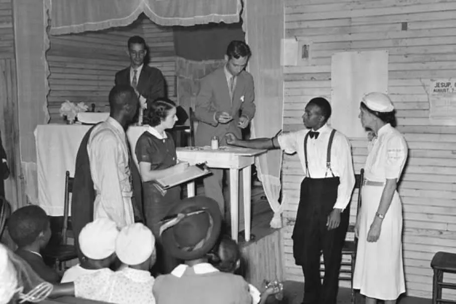 โดยหน่วยงานสาธารณสุขของสหรัฐฯ กับชายชาวแอฟริกันอเมริกันที่เป็นโรคซิฟิลิส