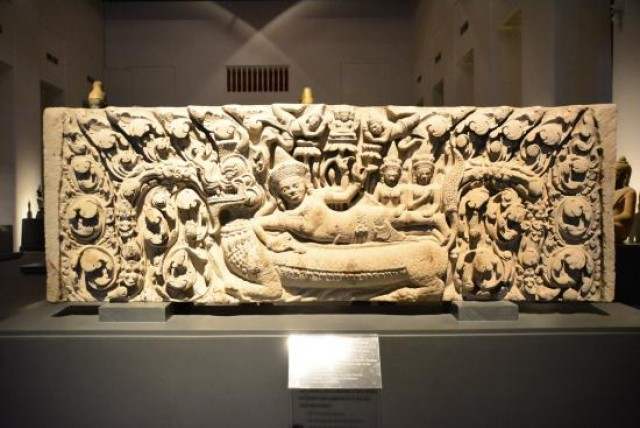 ภาพสลักบนทับหลังเป็นเรื่องราว “นารายณ์บรรทมสินธุ์”
