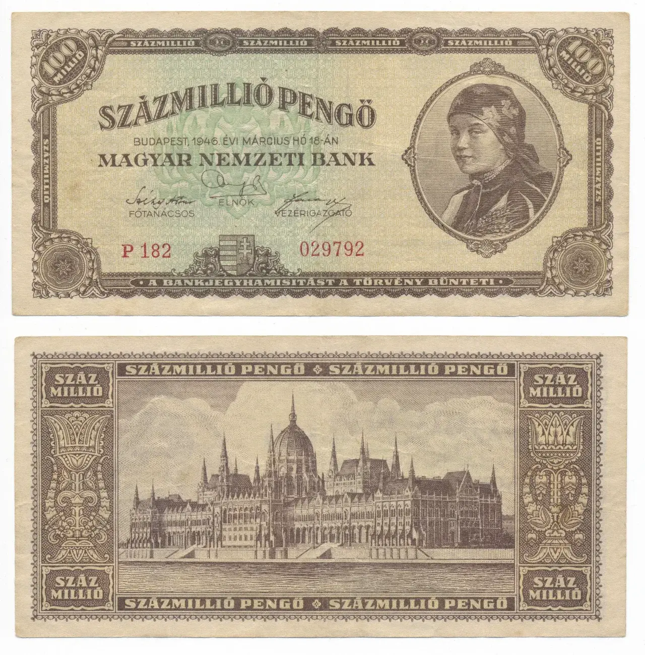 โดย Guinness ระบุว่าธนบัตร “100 quintillion pengő” ถูกพิมพ์เมื่อ 3 มิถุนายน 1946