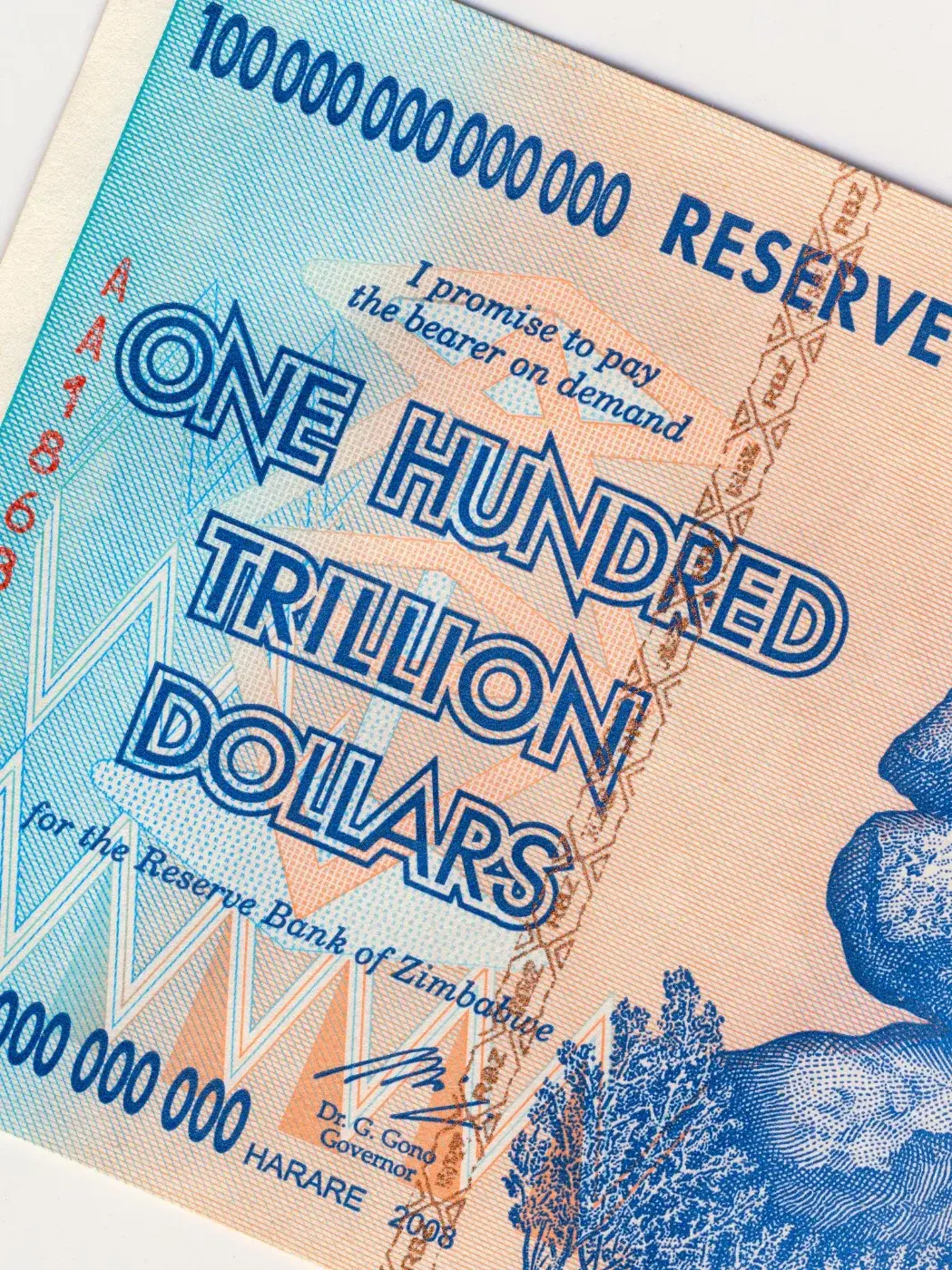 ธนบัตร “100 trillion dollars” ของซิมบับเวเป็นสัญลักษณ์ระดับโลก