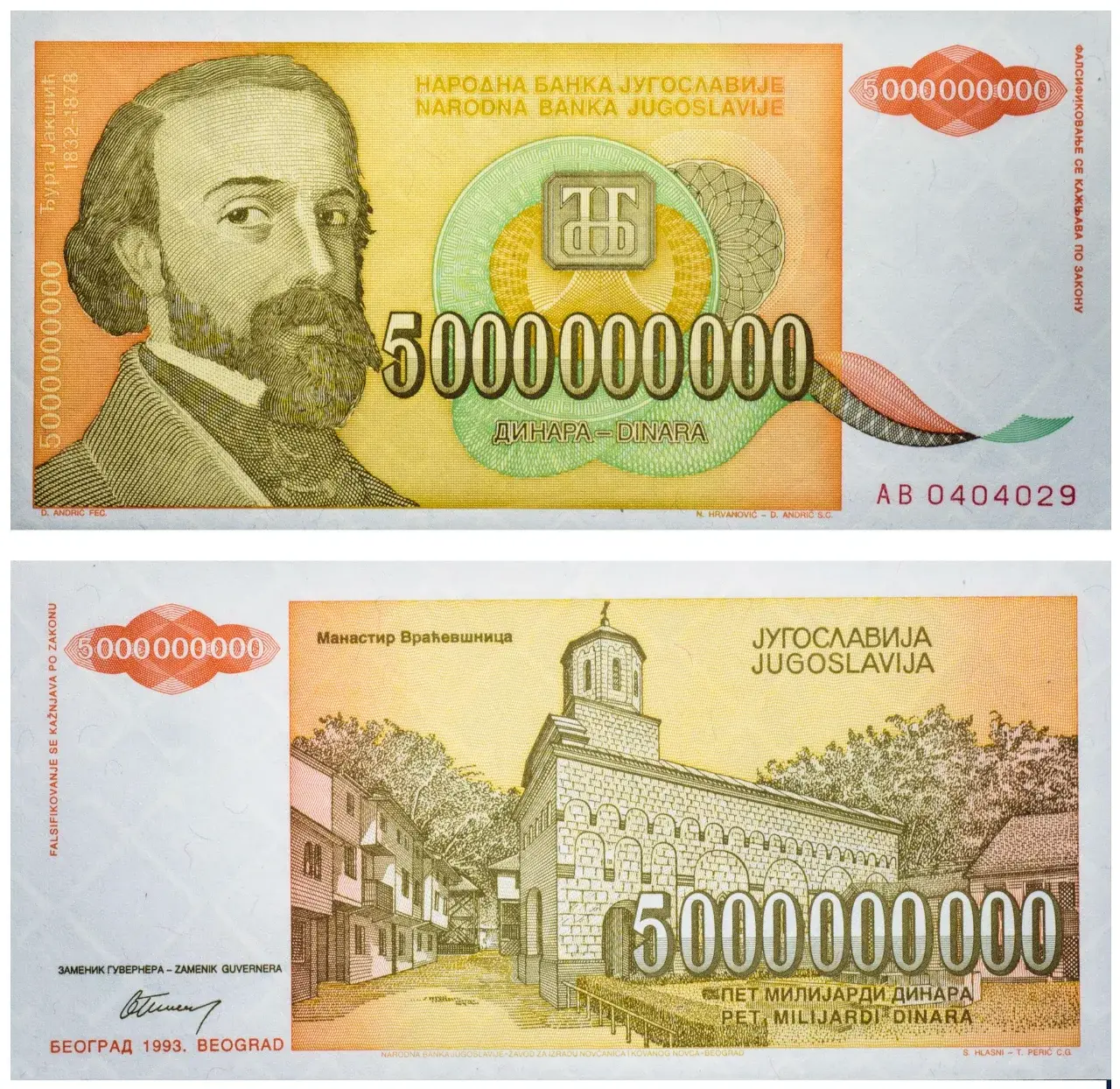 ที่รัฐยูโกสลาเวียออก (highest denomination note issued)
