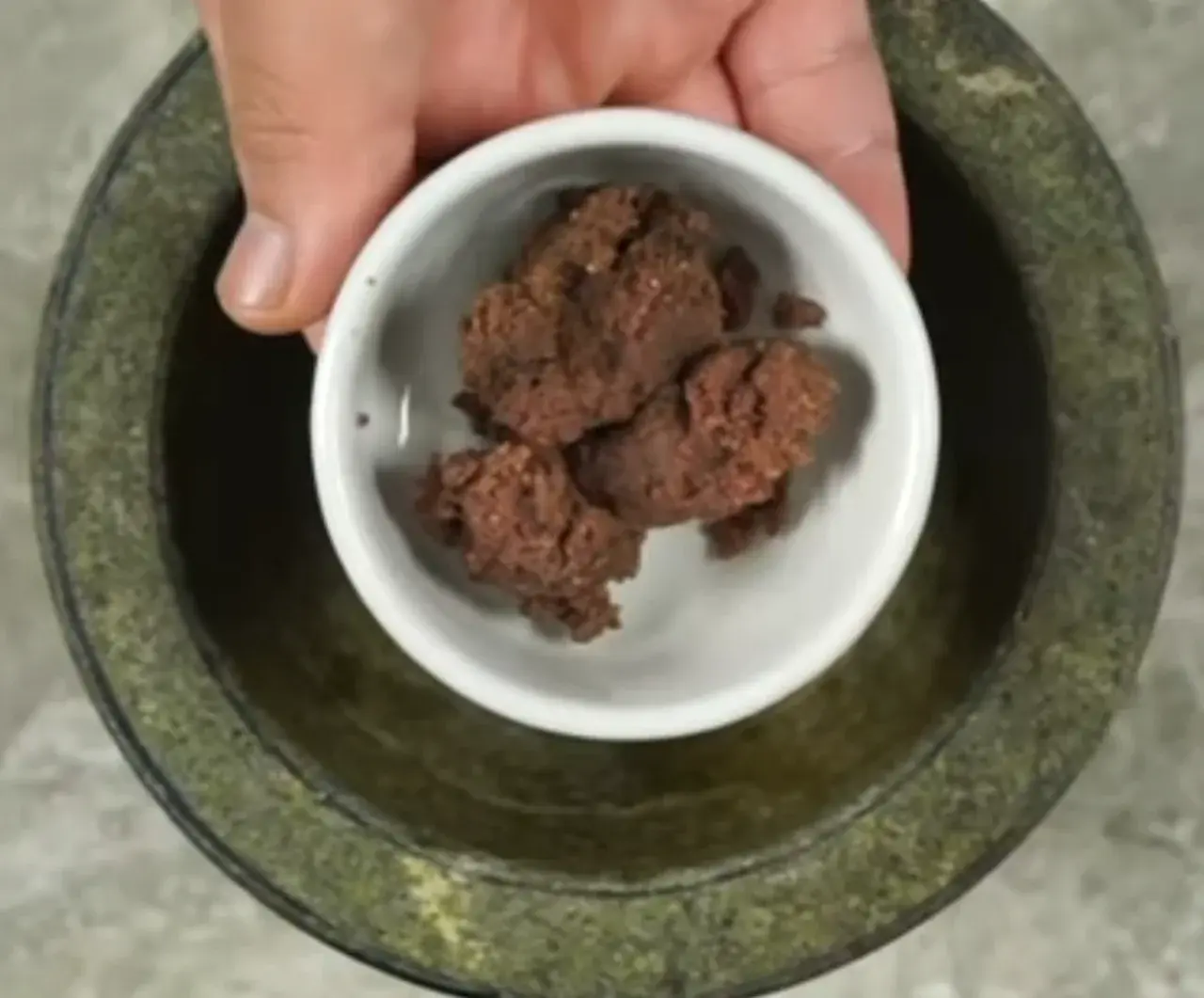 แล้วโขลกให้ส่วนผสม3 อย่างผสมเป็นเนื้อเดียวกัน