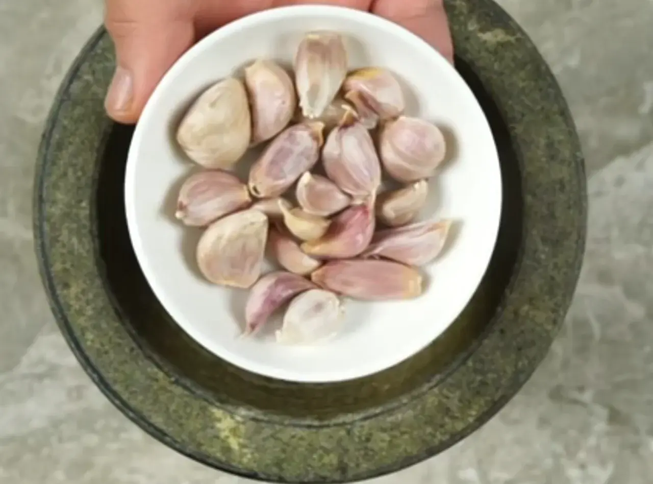 ตามด้วยกระเทียมทั้งเปลือก แต่ควรล้างทำความสะอาดก่อนนะคะ
