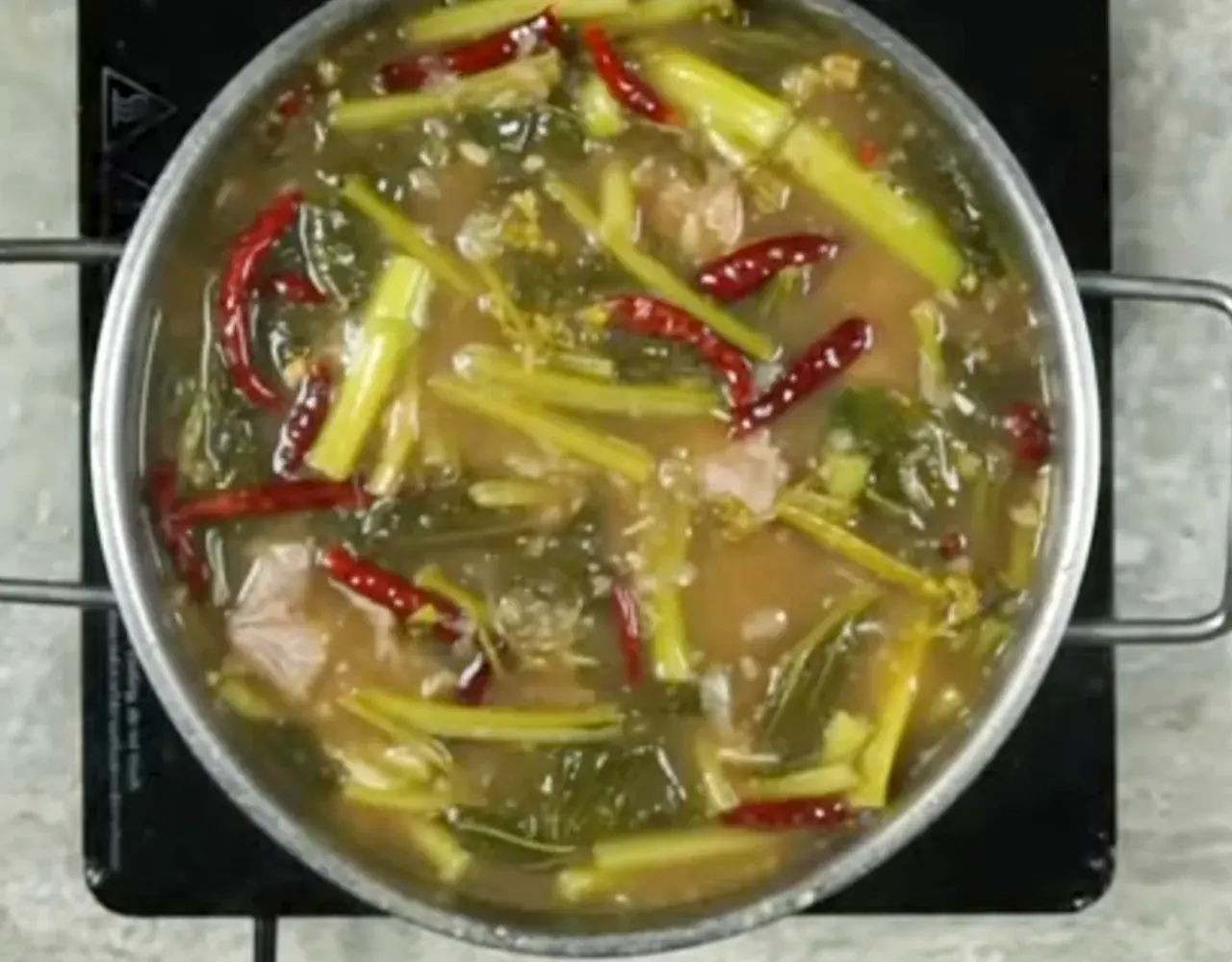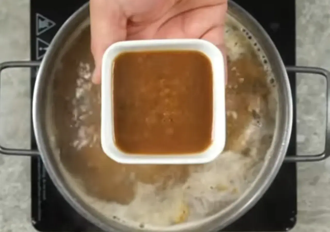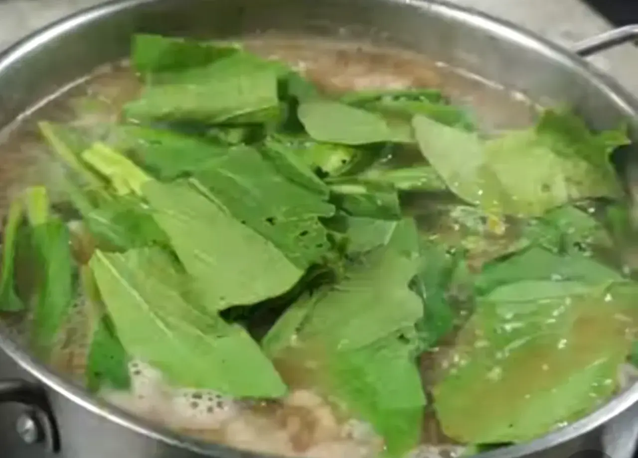 ใช้ทัพพีกดๆ ให้ผักจมน้ำแกง
