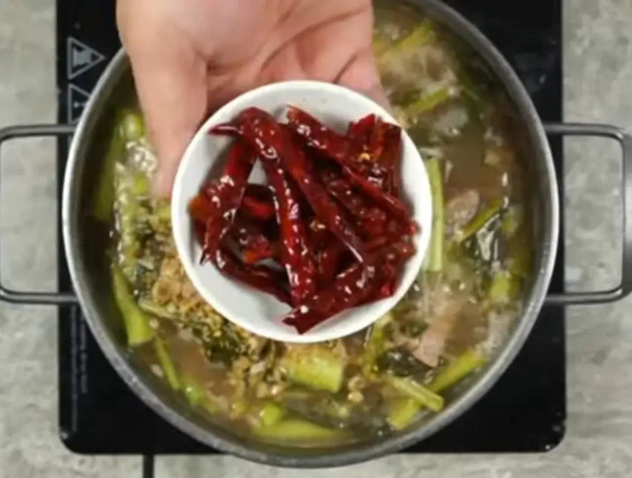 11. ตบท้ายด้วยพริกแห้งทอด เพิ่มความจัดจ้านเผ็ดร้อน และน้ำแกงดูมีสีสันสวยงาม