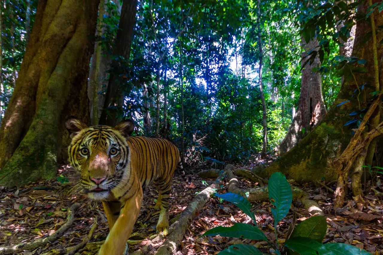 เสือสุมาตราเป็นเสือโคร่งที่เหลืออยู่เฉพาะบนเกาะสุมาตราใน Indonesia