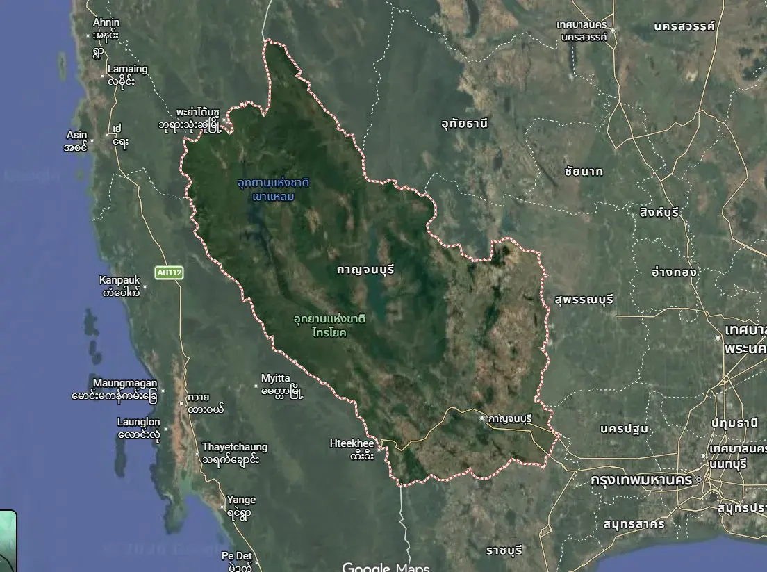 เอกสารของจังหวัดกาญจนบุรีระบุว่าแนวชายแดนด้านตะวันตกติดเมียนมา