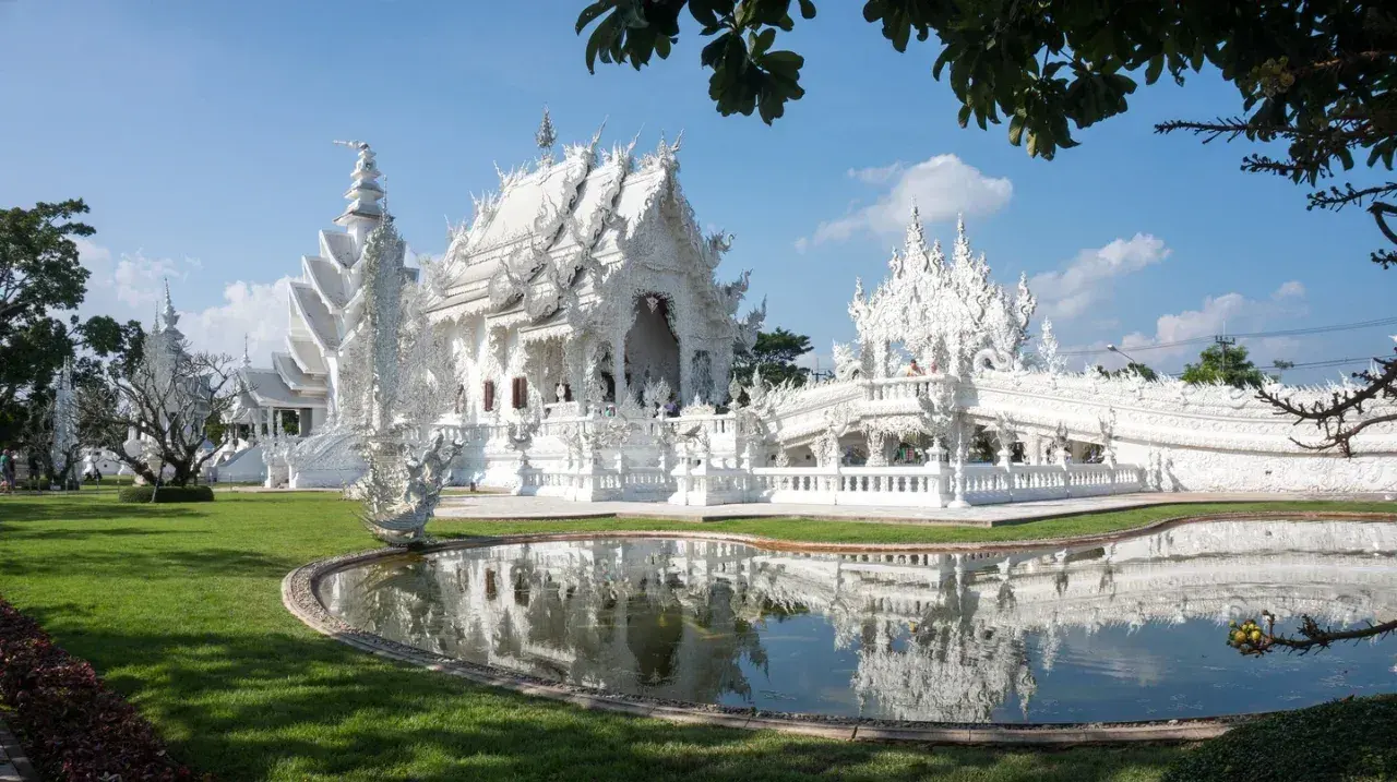 เช่น วัดร่องขุ่น ที่ออกแบบโดยอาจารย์เฉลิมชัย โฆษิตพิพัฒน์, วัดพระแก้ว