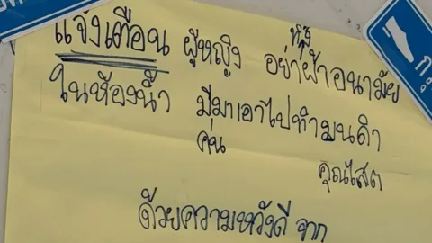 ขนลุก! ป้ายเตือนห้องน้ำจุดพักรถ "อย่าทิ้งผ้าอนามัย"
