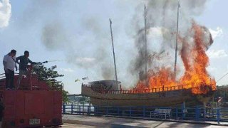 เล่นพลุตกใส่! เรือสำเภาโบราณ อายุกว่า 70 ปี เสียหายครึ่งล้านบาท