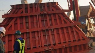แบบหล่อหัวเสาที่กำลังถูกยกออกจากพื้นที่ก่อสร้าง เหล็กขาด เหล็กร่วงหล่นทับคนงานเสียชีวิต