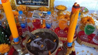 ส่องขันน้ำมนต์! กราบไหว้ขอพรพ่อปู่ศรีสุทโธแม่ย่าศรีปทุมมา เพื่อขอโชคลาภ