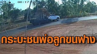 กระบะคอกพุ่งชนท้ายรถขนฟาง! พ่อเจ็บสาหัส ลูกชายเสียชีวิตคาที่