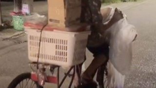 คุณยายหลับคาจักรยาน 3 ล้อ จอดขวางถนนกลางดึก