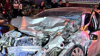 อุบัติเหตุเศร้า! เก๋งยางแตกพุ่งข้ามเกาะกลางถนนชนประสานงารถกระบะ