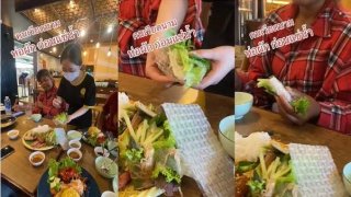 เพิ่งรู้! การกินแหนมเนือง..คนเวียดนามห่อผัก ก่อนแช่น้ำ