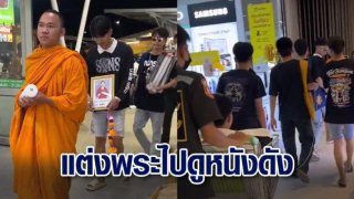 เพื่อความอิน! วัยรุ่นแต่งพระ-ถือสายสิญจน์ ไปดูหนังดัง “สัปเหร่อ” มีคลิป