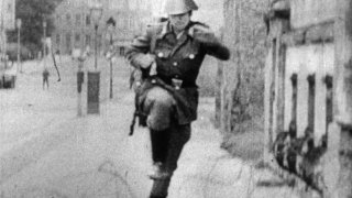 กระโดดสู่เสรีภาพ ทหารเยอรมนีตะวันออกกระโดดข้ามรั้วลวดหนามหนีไปเยอรมนีตะวันตก