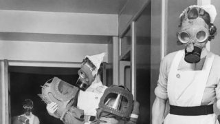 การทดสอบหน้ากากป้องกันแก๊สสำหรับทารกในโรงพยาบาลแห่งหนึ่งในอังกฤษ ปี 1940