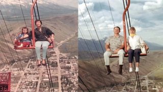 ภาพถ่ายเก่าแก่ของลิฟท์สกีบน Snow King ที่ไม่มีราวกั้นนิรภัย ดูน่าอันตรายมาก ระหว่างปี 1950-1970