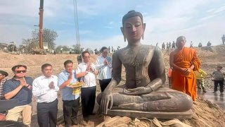 เป็นบุญตา หลังขุดพบพระพุทธรูปจมน้ำโขงคาดอยู่สมัยอาณาจักรสุวรรณโคมคำ