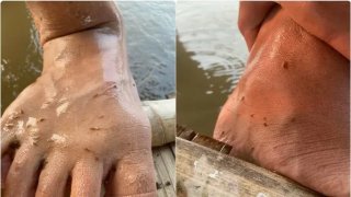เล่นน้ำหน้าร้อนระวังให้ดี..เจอตัวแบบนี้มาเกาะเต็มขา น่าขนลุก! สุดๆ