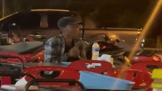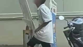 ไม่สนใครมอง ซ้ำย่ำยีป้ายสแตนดี้ หน้าร้านสะดวกซื้อ