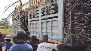 นอนหลบแดดกลางไร่ รถพ่วงเร่งขนอ้อยมองไม่เห็นขับเหยียบดับ