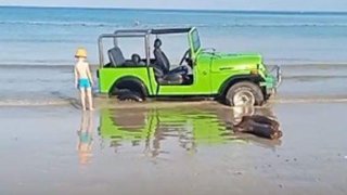 ไม่สนคำเตือน! ขับรถยนต์ลงหาดกมลา ติดหล่มล้อจมขึ้นไม่ได้