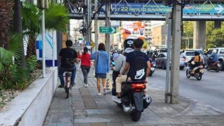 เรื่องปกติ? จยย.ขี่บนทางเท้า บีบแตรไล่