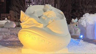 ผลงานชนะเลิศแกะสลักหิมะ สุนัขจิ้งจอกแปลงร่างปกป้องเด็กทารก