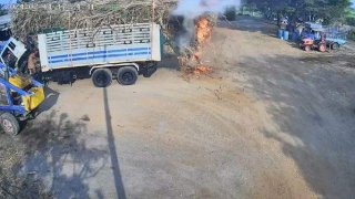 เด็กน้อย+ไฟแช็ก = รถขนอ้อยไฟไหม้ เกือบซวย!!!