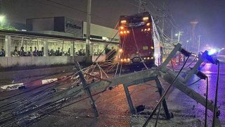 ตา70 เมาขับบัสรับส่งพนง. ชนเสาไฟฟ้าล้ม 7 ต้น แอลกอฮอล์พุ่ง 190