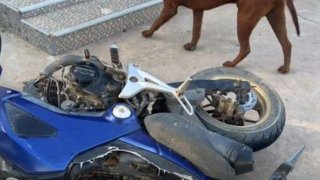 มะขามลูกรัก! สุนัขจรจัดที่เพิ่งเก็บมาเลี้ยง กัดเบาะรถจยย.ไม่เหลือสิ้นดี